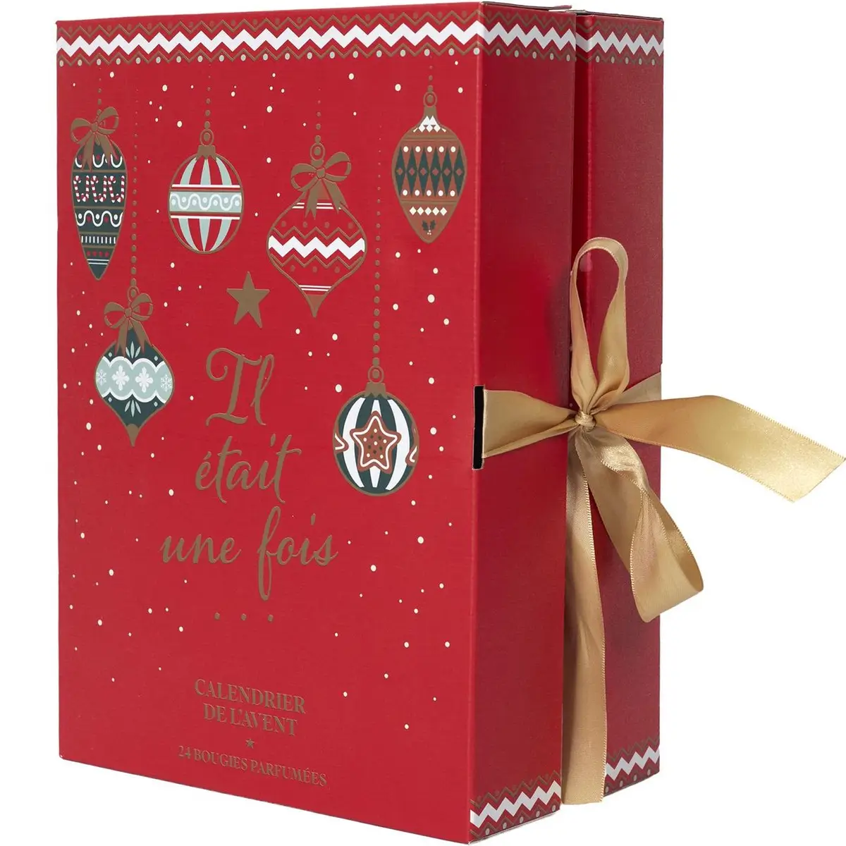 Onze adventskalender komt in een elegante uitklapbare geschenkverpakking in chique rood met goudaccenten en een stijlvolle gouden strik – een echte blikvanger onder de kerstboom. Dankzij de magnetische sluiting en boekachtige opbouw is het niet alleen een kalender, maar ook een stijlvolle decoratie voor je huis.