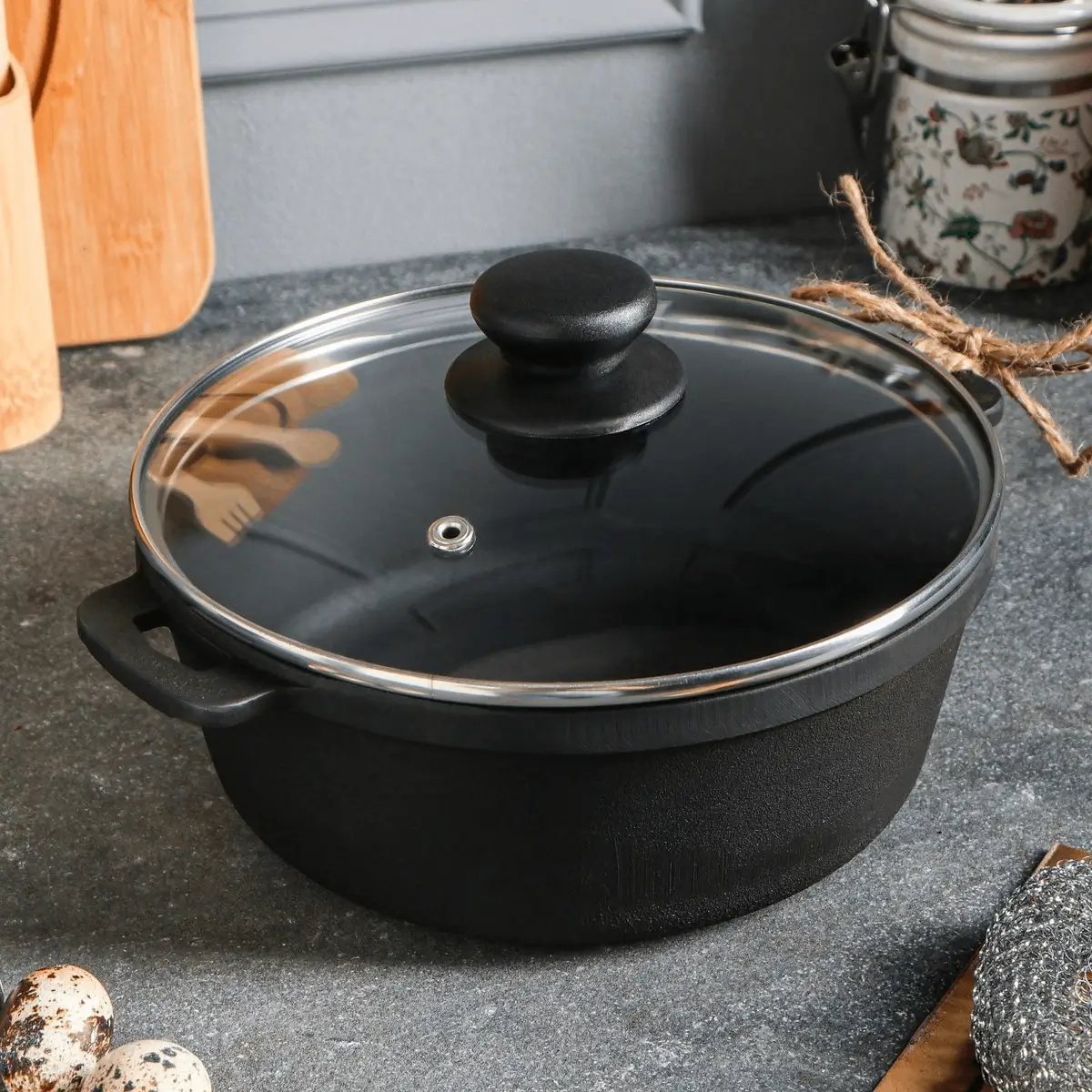 De gietijzeren wokpan 2 liter van Maysternya is ontworpen voor iedereen die graag werkt met krachtige hitte en diepe smaken. Dankzij de ruime inhoud kun je zowel roerbakgerechten als stoofpotten bereiden. De pan is geschikt voor alle warmtebronnen, zoals inductie, gas, keramisch en zelfs open vuur. Daarmee is dit een perfecte pan voor zowel binnen als buiten koken.