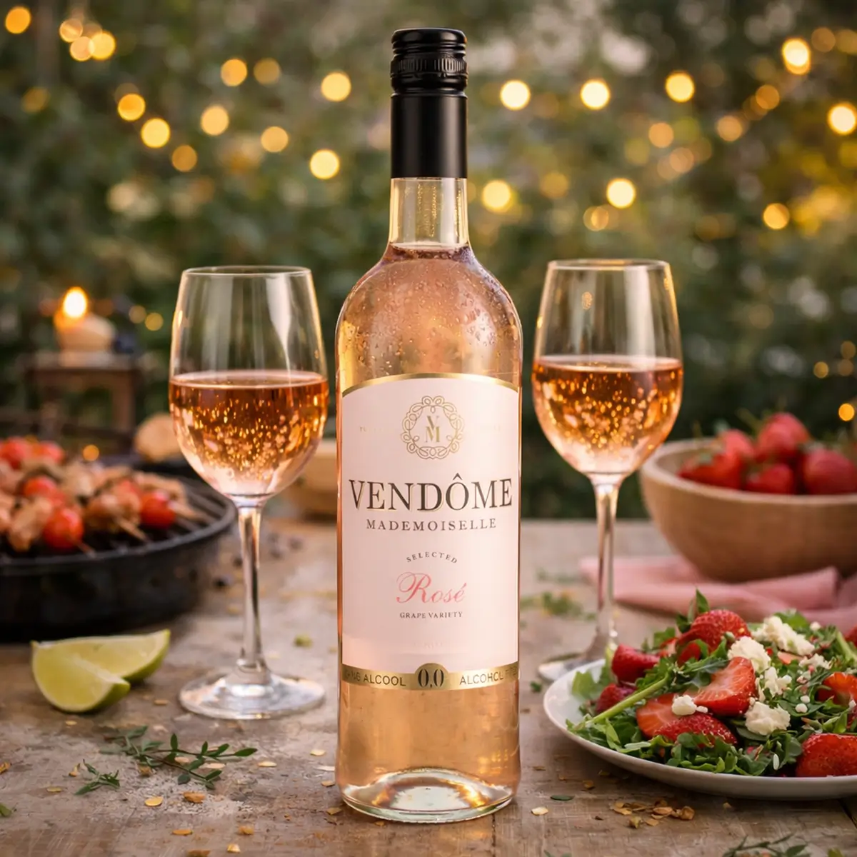 Vendôme Mademoiselle Rosé Alcoholvrij is een veelzijdige wijn die perfect is als aperitief, maar ook uitstekend combineert met BBQ-gerechten, gemengde salades en licht gekruide gerechten. Ideaal voor zonnige dagen, diners of een ontspannen moment.