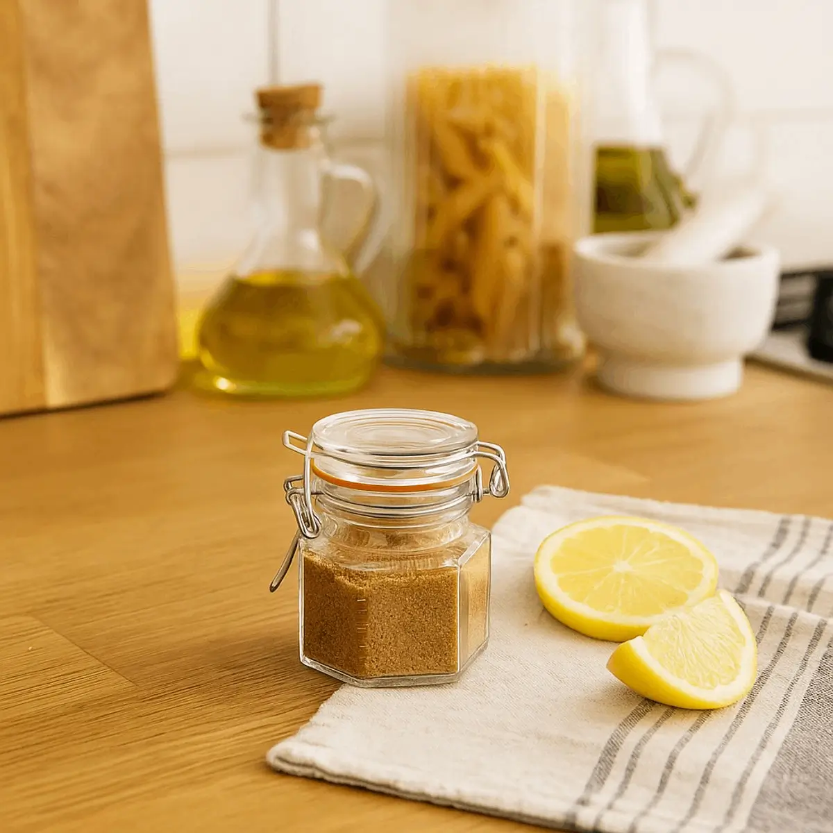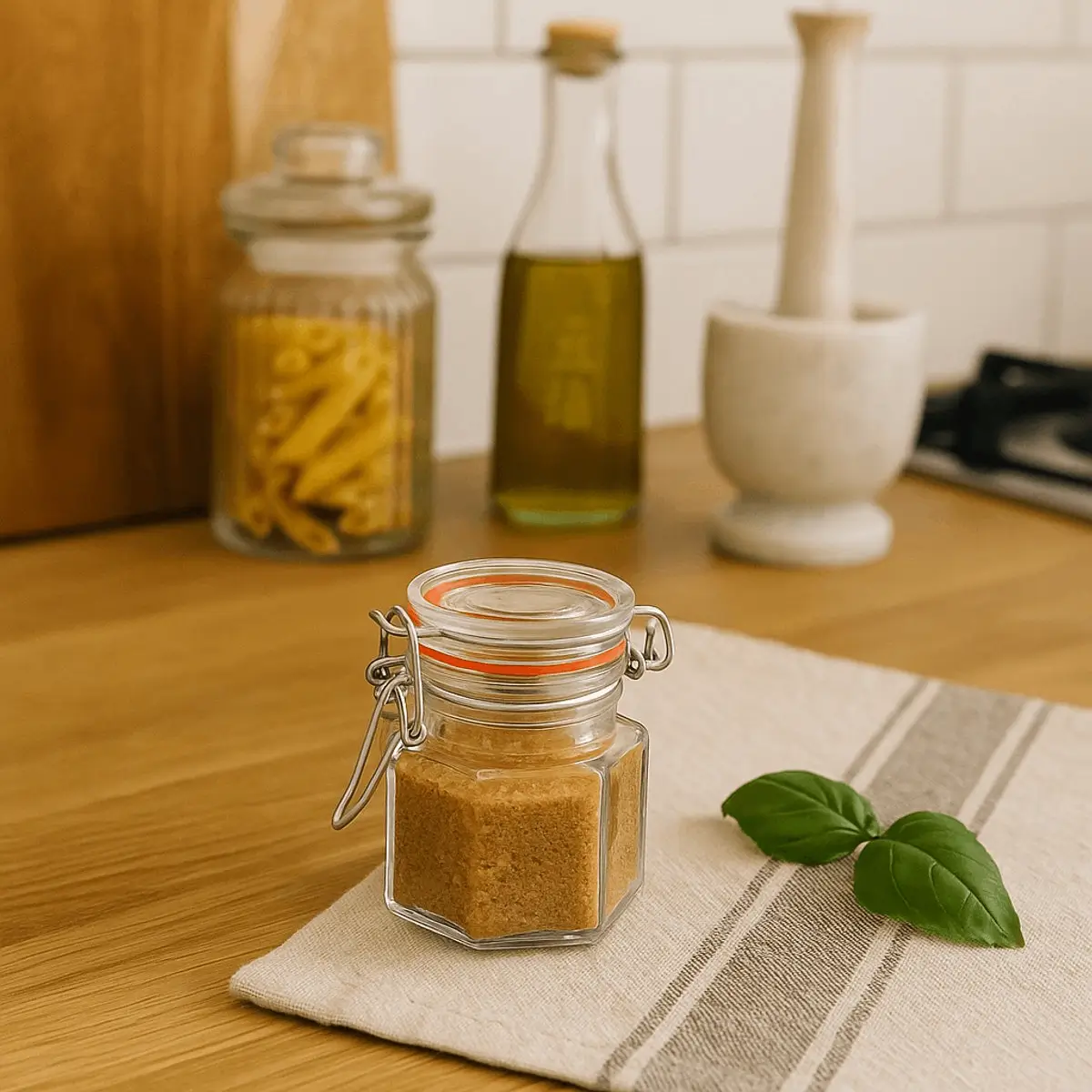 Zeshoekige weckpotjes 100 ml set van 6 – glazen voorraadpotjes met beugelsluiting (luchtdicht)